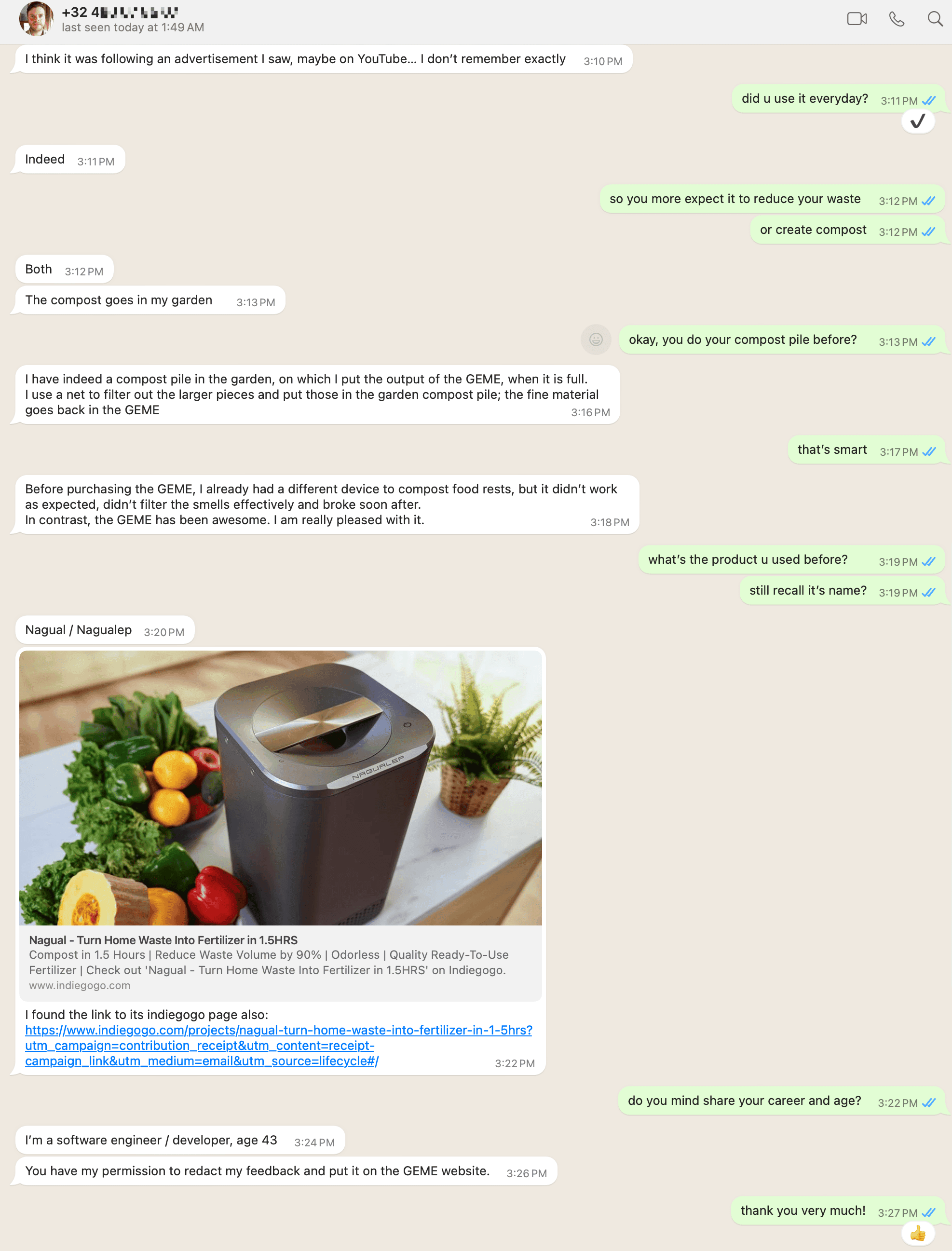 Features GEME Terra 2 Lomi-like Dehydrators Price < $600 $150 < x < $500 Size 14L 3L - 4L Working Mode Continuous composting Periodic grinding and dehydrating End Result Real compost Dried and cooked waste Interaction Add waste anytime Wait for cycle to complete Filter System Permanent filter,